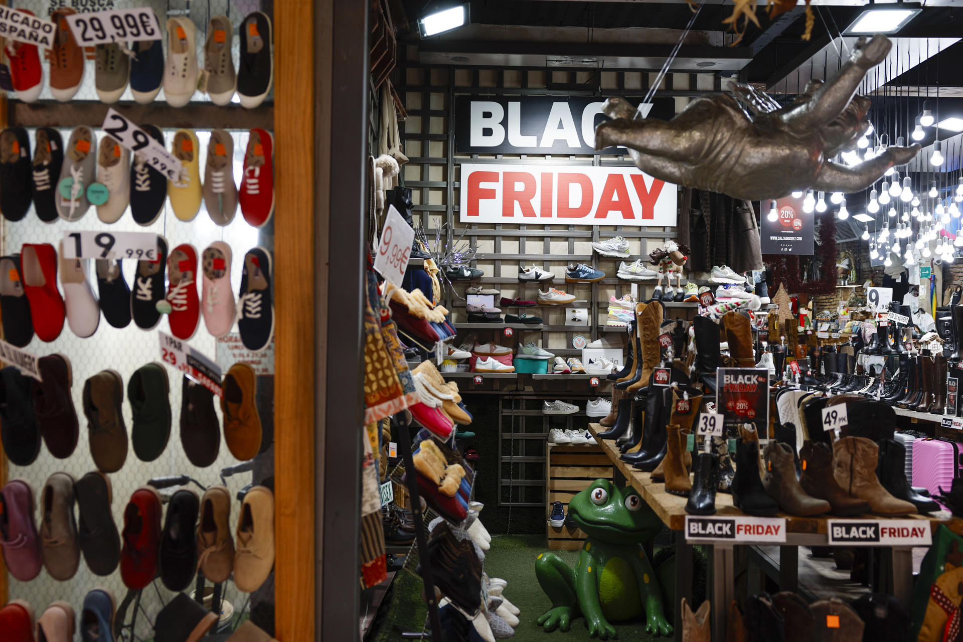 Un cartel anuncia las rebajas del llamado ‘Black Friday’ en un comercio en Madrid EFE/ Mariscal