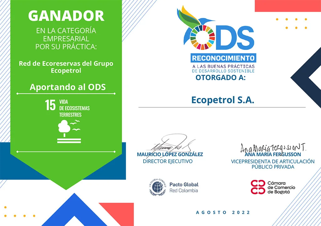 Gestión y Calidad: | Se viene realizando un proceso de designación de Ecoreservas mediante la aplicación de la Guía para la identificación y designación de Ecoreservas en predios del Grupo Empresarial Ecopetrol, que establece las actividades que deben realizarse desde que un predio es propuesto como una oportunidad, hasta que se hace la designación formal de una Ecoreserva. Para las Ecoreservas se tendrán Planes de Biodiversidad y Fortalecimiento que incluyen el diagnóstico sobre la condición actual del área en estudio, el manejo a partir de la zonificación, las reglas para el uso de los recursos naturales y el desarrollo de las actividades permitidas, al igual que las estrategias, metas y actividades que se desarrollarán para alcanzar los objetivos específicos de conservación del área protegida. Adicional al convenio FIBRAS y su aporte para la evaluación de oportunidades y la construcción de los primeros seis (6) Planes de Biodiversidad y Fortalecimiento, en el mes de enero de 2022 se firmó un nuevo convenio con la participación del IAvH como ejecutor y de Cenit Transporte y Logística de Hidrocarburos S.A.S (CENIT), Oleoducto Bicentenario de Colombia S.A.S (Bicentenario) y Ecopetrol S.A. como participantes, para continuar estas labores hasta el año 2024. Para el año 2022 en las primeras seis (6) Ecoreservas piloto, se contará con los primeros Planes de Biodiversidad y Fortalecimiento elaborados por el Convenio FIBRAS suscrito entre Ecopetrol S.A. y el IAvH. Esto permitirá iniciar su implementación gradual y lanzar las actividades que protegerán y conservarán estas áreas para aportar a la Biodiversidad, la conectividad, el desarrollo de territorios sostenibles, y las acciones de mitigación y adaptación al cambio climático. Gracias al Convenio FIBRAS y los estudios de campo realizados por el IAvH, se ha avanzado en el conocimiento de los aspectos principales de Biodiversidad de las 6 Ecoreservas piloto. De la misma forma se han generado catálogos de imágenes y sonidos, que permiten dar a conocer la Biodiversidad de las Ecoreservas a todos los Grupos de Interés. Para más información y consulta de resultados preliminares correspondientes a los monitoreos de Biodiversidad realizados con el apoyo del IAvH, ingrese aquí. (https://www.ecopetrol.com.co/wps/portal/Home/sostecnibilidad/ambiental/biodiversidad/sbn) |