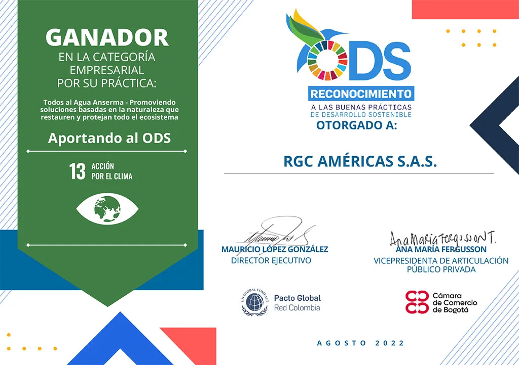 Gestión y Calidad: | Después de tres años de implementación el proyecto se consolida como programa permanente de RGC Coffee, su impacto se demuestra con los siguientes resultados: Modelo de negocio: - Se han exportado 14.000 sacos de café y recibido una prima de COP $1,300,000,000 para financiar el proyecto.