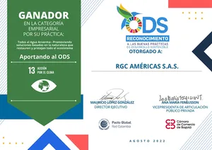 En cuanto a la gestión de huella de carbono, 500 fincas del área de influencia del proyecto, participaron del primer piloto de medición, logrando identificar prácticas que tienen mayor impacto en la generación de emisiones, como la fertilización, manejo de residuos del cultivo y el tratamiento de las aguas residuales de beneficio del café. Ratificando que las acciones promovidas por el proyecto son aquellas que efectivamente ayudan a mitigar los impactos del cambio climático. Además, Todos al Agua es el corazón de la estrategia de Sostenibilidad de RGC Coffee, conectando la realidad de la caficultura con las necesidades de los clientes, obtener un café climáticamente inteligente que a futuro sea carbono neutro. Actualmente el proyecto se está replicando en Perú y una segunda fase del proyecto se está diseñando para ser replicando en otra región de Colombia. |