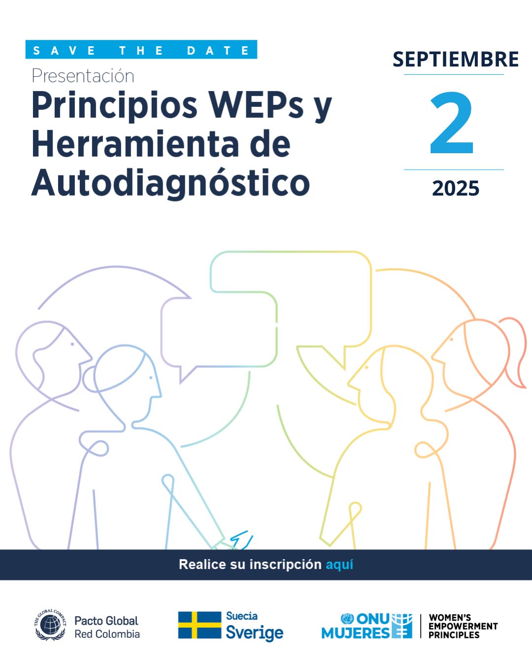 Desde ONU Mujeres Colombia y Pacto Global Red Colombia les extendemos una especial invitación a la sesión de presentación de los Principios para el Empoderamiento de las Mujeres WEPs y su Herramienta de Autodiagnóstico, el próximo 2 de Septiembre , de 8:00 a.m. a 9:30 a.m.