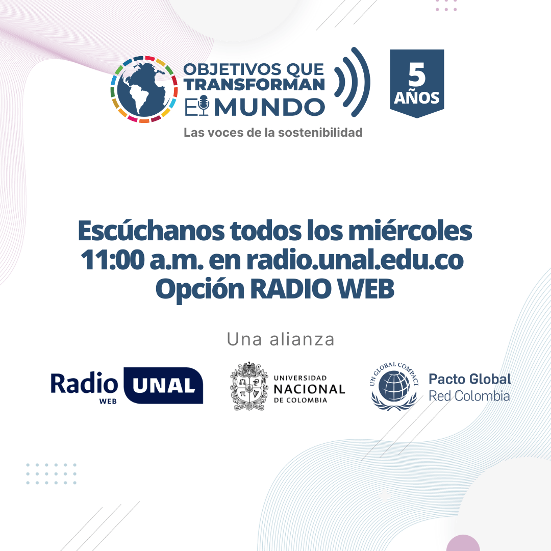 OBJETIVOS QUE TRANSFORMAN EL MUNDO es un espacio de Pacto Global Red Colombia junto a la Universidad Nacional que busca de una manera dinámica discutir sobre la Agenda 2030, estrategias sostenibles, la protección del medio ambiente y la prosperidad social.