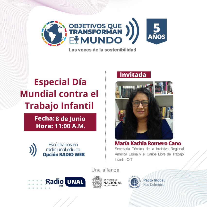 OBJETIVOS QUE TRANSFORMAN EL MUNDO es un espacio de Pacto Global Red Colombia junto a la Universidad Nacional que busca de una manera dinámica discutir sobre la Agenda 2030, estrategias sostenibles, la protección del medio ambiente y la prosperidad social. ¡Escúchenos todos los miércoles a partir de las 11:00 a.m. en radio.unal.edu.co - Opción RADIO WEB!