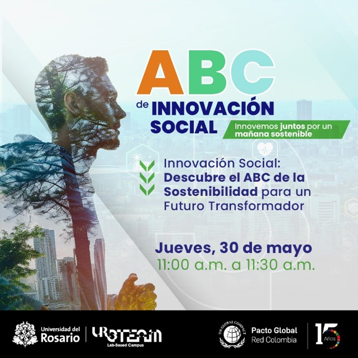 Acompáñanos en la jornada de webinars "ABC de Innovación Social", una serie de encuentros virtuales diseñados desde la Mesa de Innovación Social de Pacto Global Red Colombia, por URSTEAM Lab Based Campus de la Universidad del Rosario y Pacto Global Red Colombia, para explorar y comprender en profundidad el concepto de Innovación Social, así como su impacto y desarrollo en diversos ámbitos.