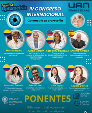 La optometría: una profesión clave para la sostenibilidad y el cumplimiento de los ODS | | El 15 y 16 de agosto de 2025 se realizó en Neiva, Huila, el Congreso Internacional de Optometría, organizado por la Universidad Antonio Nariño Perfil Oficial . El evento reunió a expertos de la salud visual de Iberoamérica, quienes discutieron avances en investigación, inclusión social y nuevas herramientas para garantizar el acceso a servicios de atención primaria en salud visual.