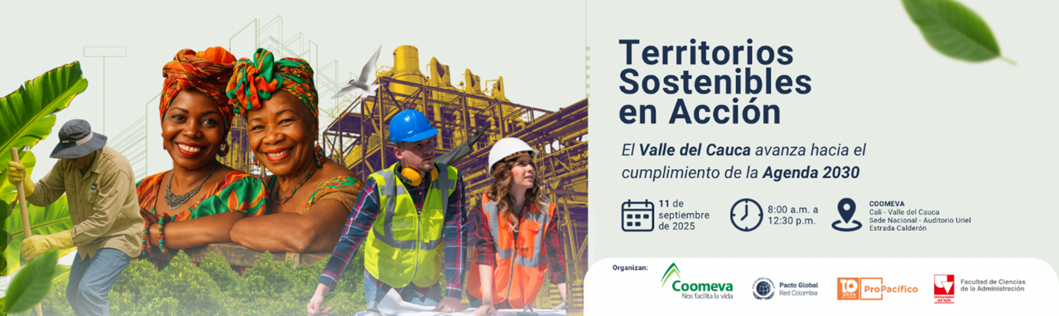 Los esperamos en "Territorios Sostenibles en Acción", Valle del Cauca 2025 | | En un esfuerzo por acelerar el cumplimiento de los Objetivos de Desarrollo Sostenible (ODS) y promover una transformación positiva en los territorios, el próximo 11 de septiembre en Cali – Valle del Cauca, se llevará a cabo el foro “Territorios Sostenibles en Acción”, un espacio liderado por Coomeva, Pacto Global Red Colombia, Propacífico y la Universidad del Valle.