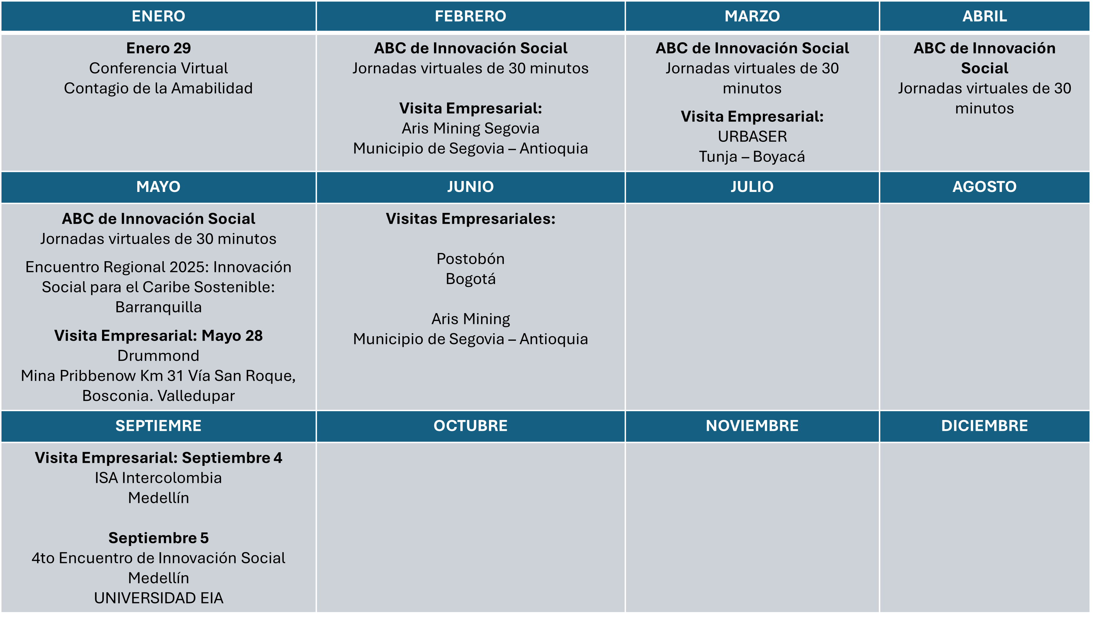 Mes | Organización | Ciudad / Region |