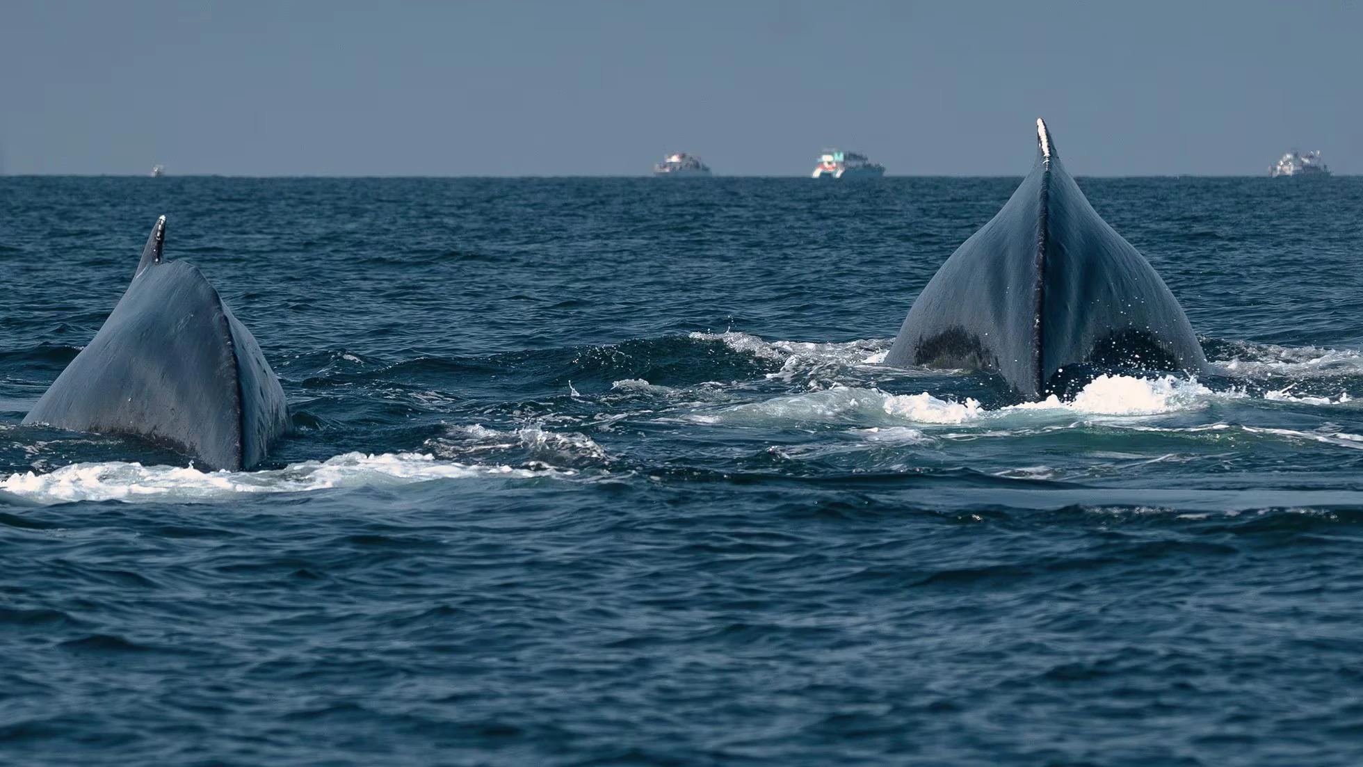 Una pareja de ballenas jorobadas nada en la Bahía de Banderas, donde el turismo ha desencadenado el aumento de colisiones entre ballenas y embarcaciones.