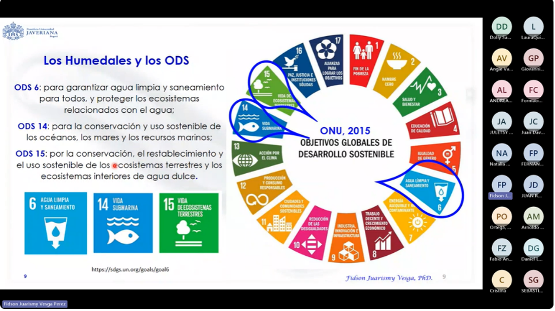 Finalmente, Vesga Pérez destacó que en Colombia existen más de 30 millones de hectáreas de humedales, cubriendo aproximadamente el 20% del territorio nacional, y que el 87% de la población del país habita en zonas de humedal, lo que implica la necesidad urgente de su conservación y manejo sostenible.