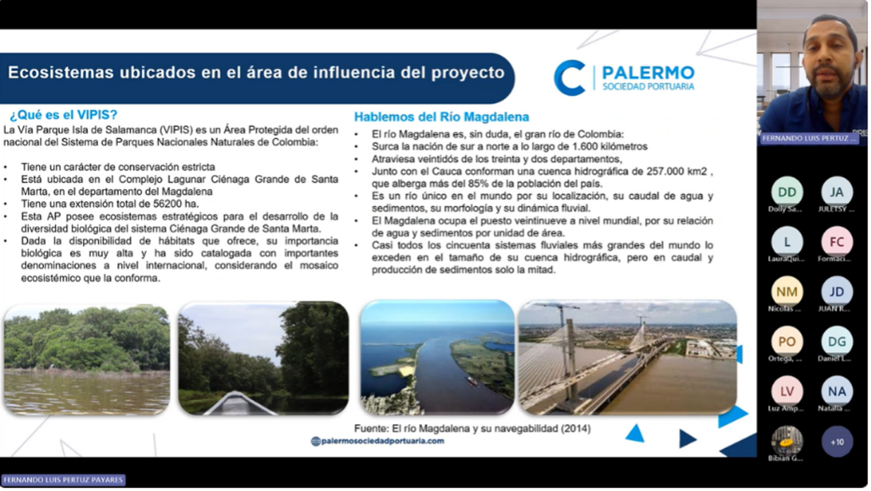 De otra parte, Fernando Pertuz, representante de Palermo Sociedad Portuaria – COREMAR, empresa adherida a Pacto Global Red Colombia y quien a partir de esta fecha formará parte de la Secretaría Técnica de la mesa de trabajo, realizó un recuento de la "Gestión del Recurso Hídrico para el Sector Portuario", resaltando la relevancia de comprender la composición y el manejo integral del recurso hídrico.