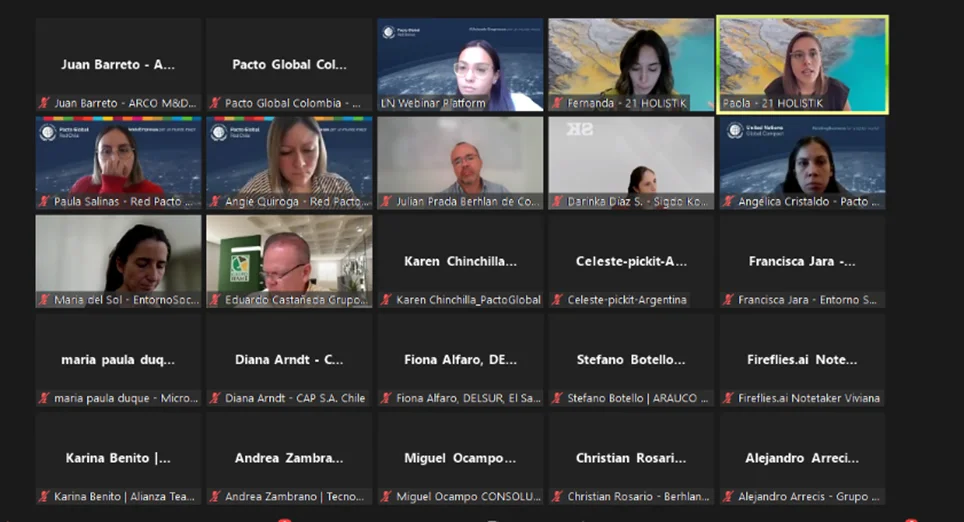 El pasado 13 de agosto se llevó a cabo la tercera sesión regional facilitada del Acelerador de Ambición Climática 2024, enfocada en Objetivos Basados en la Ciencia (SBTi): Información y debate. A la sesión asistieron 103 participantes, incluidos representantes de 15 empresas adheridas a Pacto Global Red Colombia; contó con la destacada participación de Fernanda Delgado, Gerente de Clima y Naturaleza, y Paola De Luna, CEO, ambas de 21 HOLISTIK y expertas en objetivos basados en la ciencia.