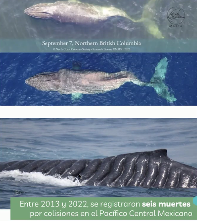“Hay que tomar en cuenta que a estas embarcaciones grandes les toma bastante tiempo frenar. Hay un montón de ballenas que tienen golpes de embarcaciones. Incluso ni siquiera sabemos el número exacto, porque las ballenas, cuando mueren, se van al fondo marino. Sólo tenemos el registro de aquellas cuyo cuerpo quedó en la superficie o que llegó a las costas”, detalla la especialista.