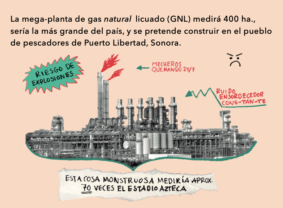 La antropóloga Natalia Mendoza recordó que este megaproyecto gasífero también está ligado al Plan Sonora de Energía Sostenible, una iniciativa de fortalecimiento energético del gobierno del presidente Andrés Manuel López Obrador, cuyas actividades incluyen, entre otras, la explotación de litio en el municipio de Bacadehuachi, Sonora, y la construcción de la Central Fotovoltaica más grande de Latinoamérica, en el municipio de Puerto Peñasco, con lo que se busca posicionar al estado de Sonora como un referente mundial en generación de energías sostenibles.