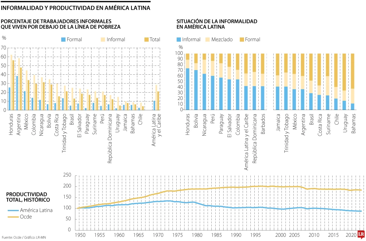 Ahora, el bloque, junto a la Cepal y el Banco de Desarrollo de América Latina y el Caribe, CAF, ampliaron su informe de perspectivas con las alertas por los bajos niveles de productividad en la región y cómo esto viene acelerando la informalidad laboral de los países.
