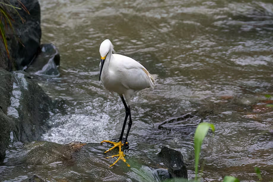 Garza patiamarilla ("Egretta thula") en la orilla del río Cali. Foto: Mauricio González