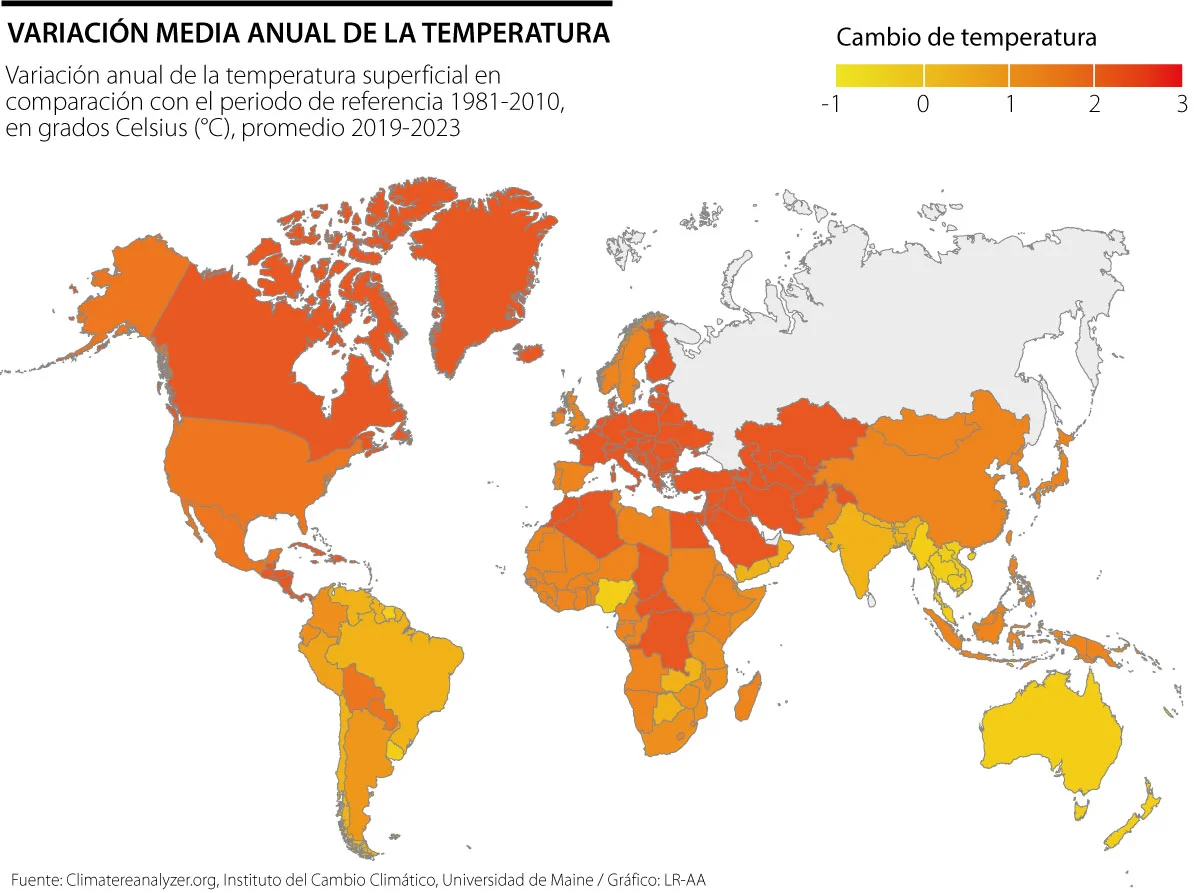 Hay tantas respuestas a esta pregunta como termómetros en el mundo. Para facilitar un poco la búsqueda, los científicos no se fijan en las temperaturas absolutas, como haría cualquiera al salir de casa por la mañana. En su lugar, analizan las desviaciones de cada estación meteorológica respecto al promedio.