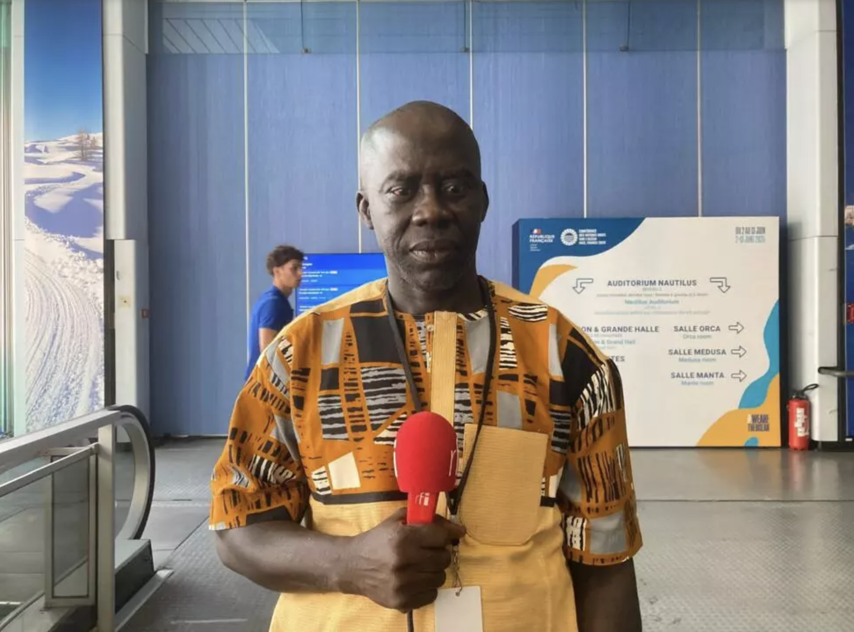 Salatou Sambou, pescador de la region de Casamanza en Senegal, entrevistado por RFI en la cumbre del océano de Niza, junio de 2025 © RFI Yang Mei