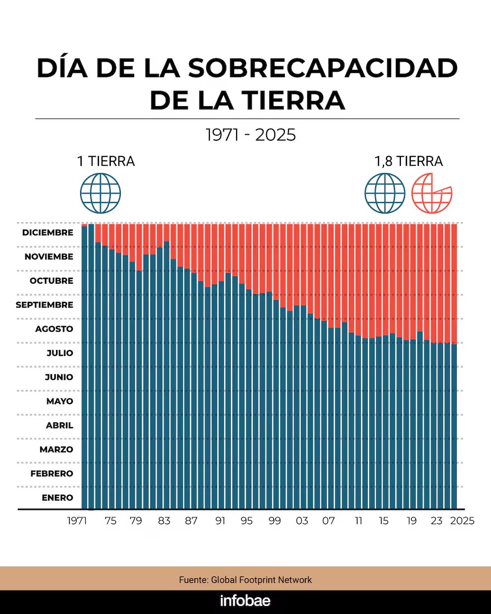 A partir de esa base, Global Footprint Network proyecta los resultados probables para 2025.