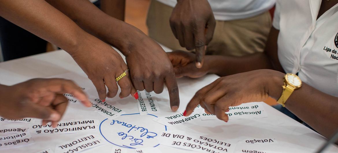 © UNDP/Cynthia R Matonhodze Personas debaten en una mesa de negociación.