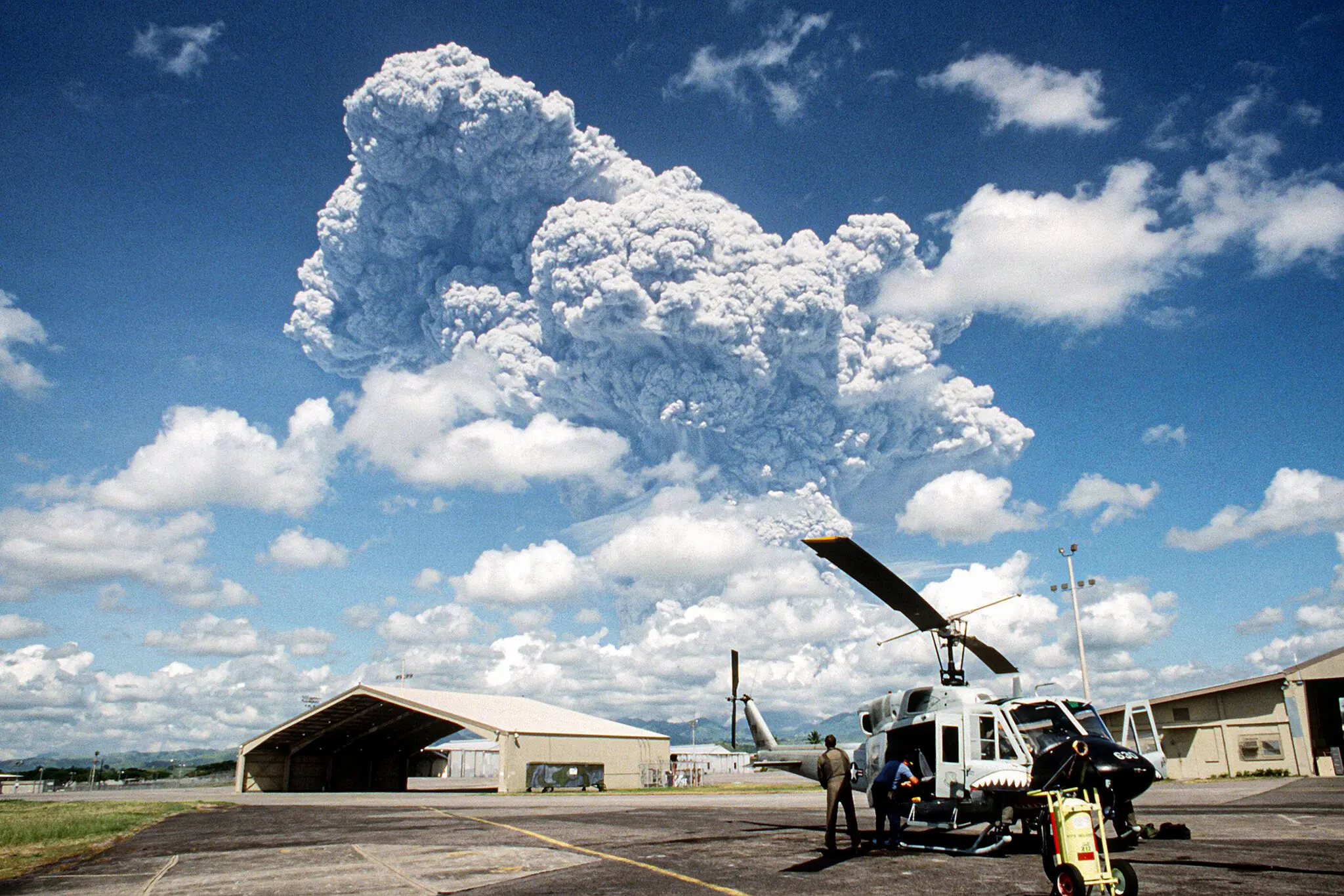 Ceniza del Monte Pinatubo vista desde la Base Aérea de Clark en Luzón, Filipinas, en junio de 1991.Credit...NB/ROD, vía Alamy