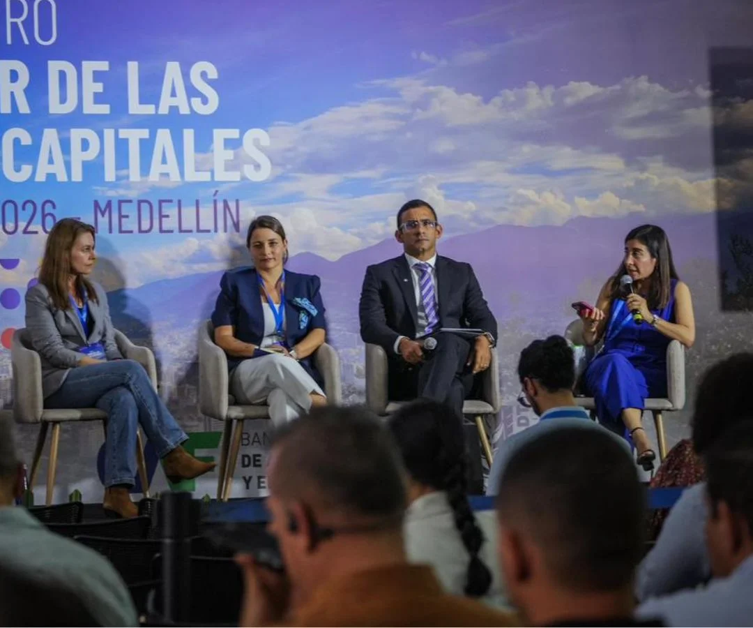 Marcela Ruíz, secretaria de Medio Ambiente de Medellín; Carla Amtmann Fecci, alcaldesa de Valdivia, Chile; y Hugo Kerguelén, alcalde de Montería, conversaron en este panel.