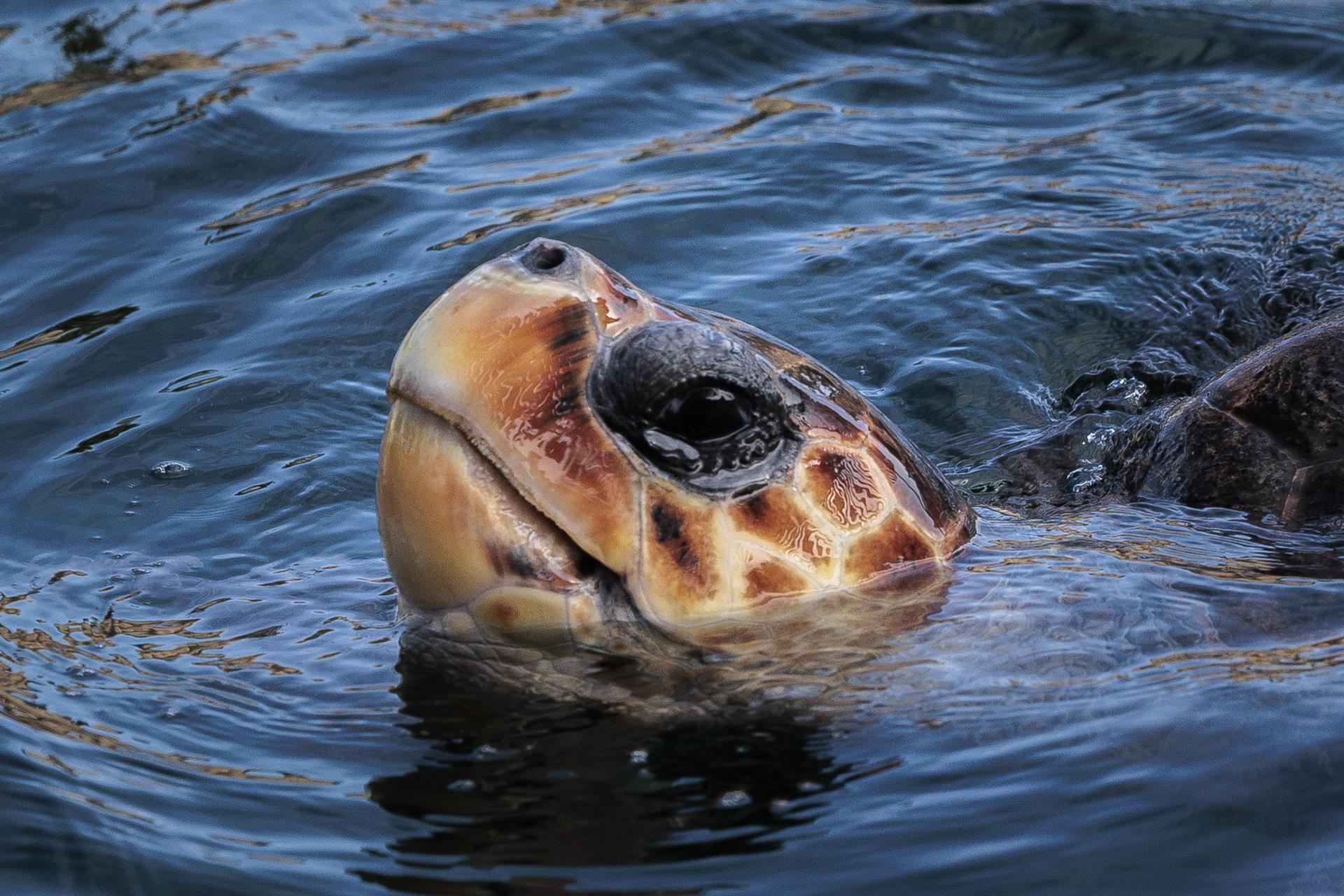 Una tortuga nada en aguas del Oceanogràfic de Valencia. EFE/Biel Aliño