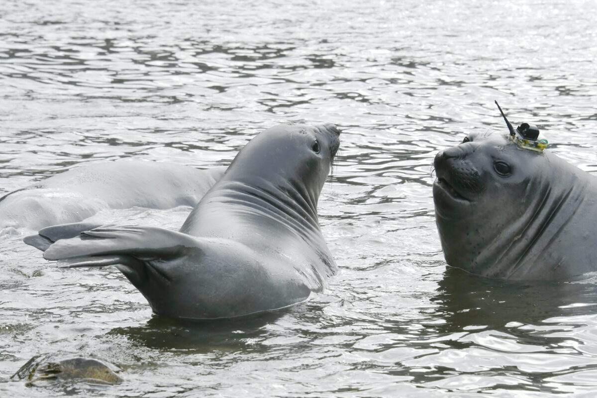 Elefantes marinos con transmisores satelitales en Bahía Jackson. Foto: cortesía Maritza Sepúlveda