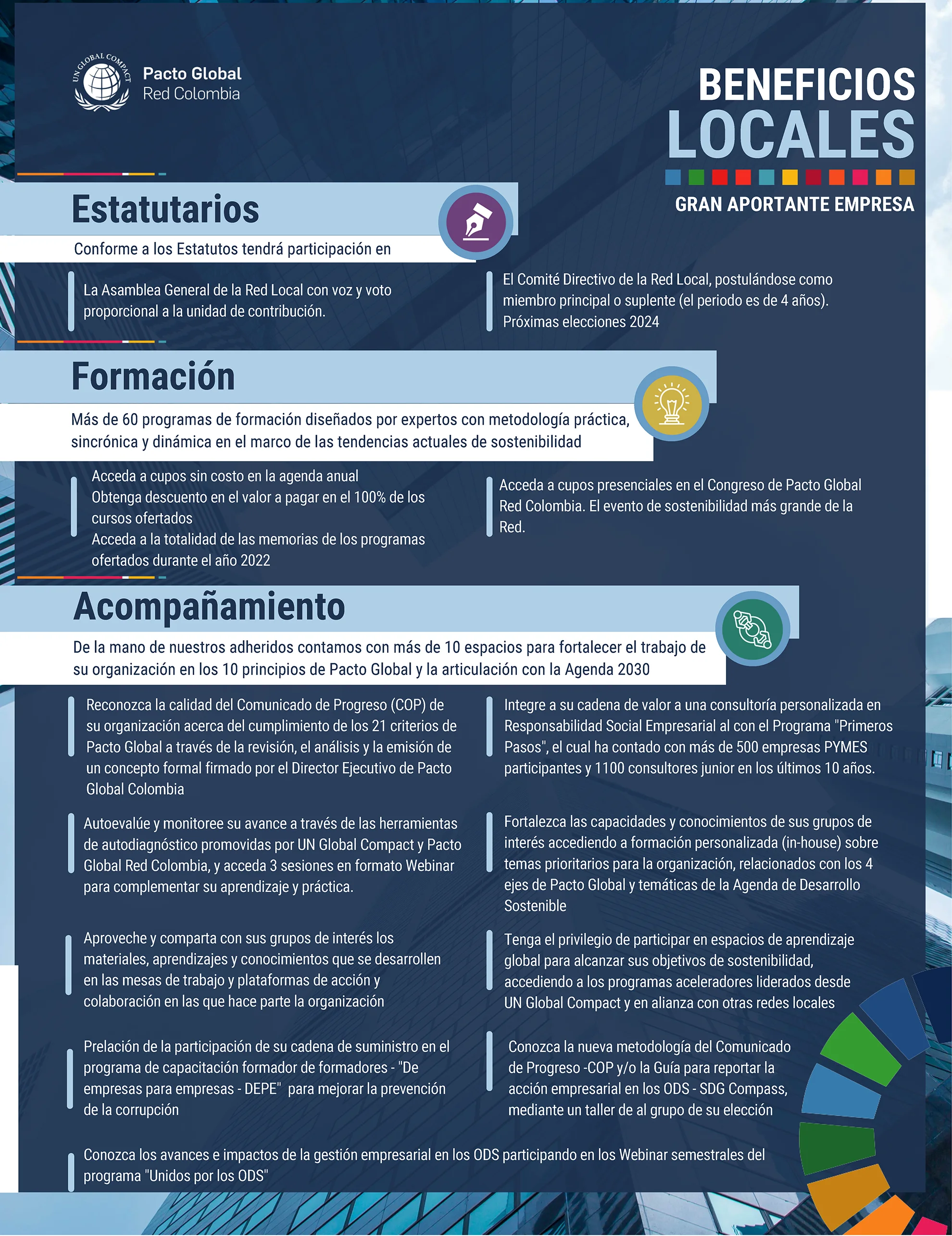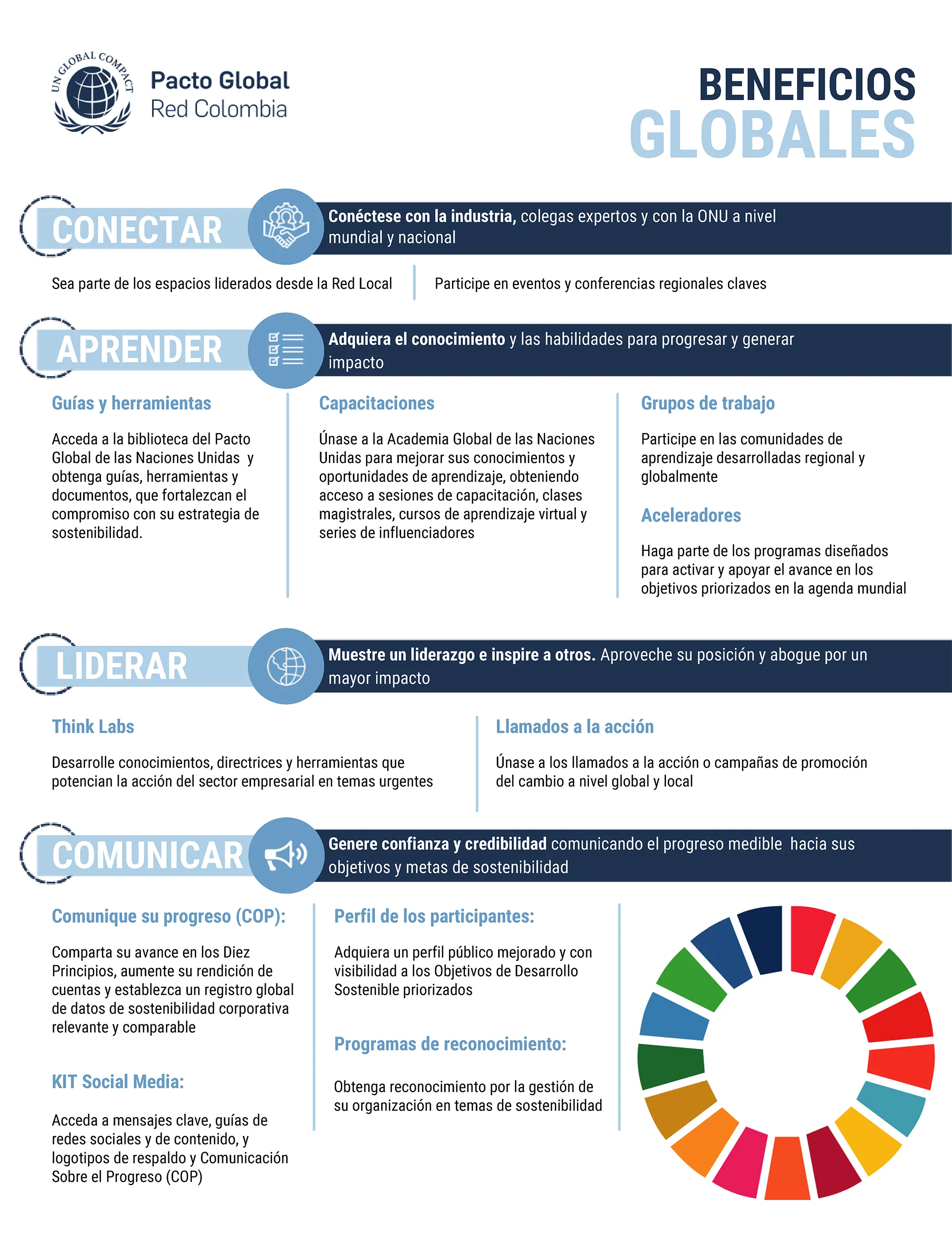 Queremos seguir fortaleciendo los nexos con las empresas, gobiernos, el Sistema de Naciones Unidas y la academia en pro de un mundo mejor y los invitamos a conocer los beneficios de estar adherido y ser contribuyente de la iniciativa corporativa más grande del mundo.